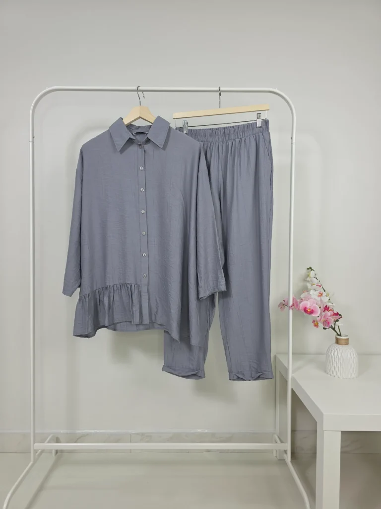 Blouse and Pants Set in Gray – Turkish Manufacturing