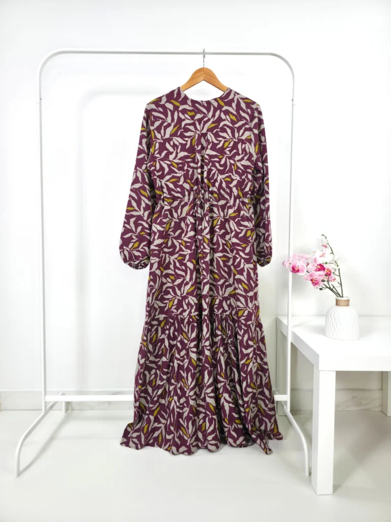 Printed Dress with Leaf Pattern – Turkish Manufacturing