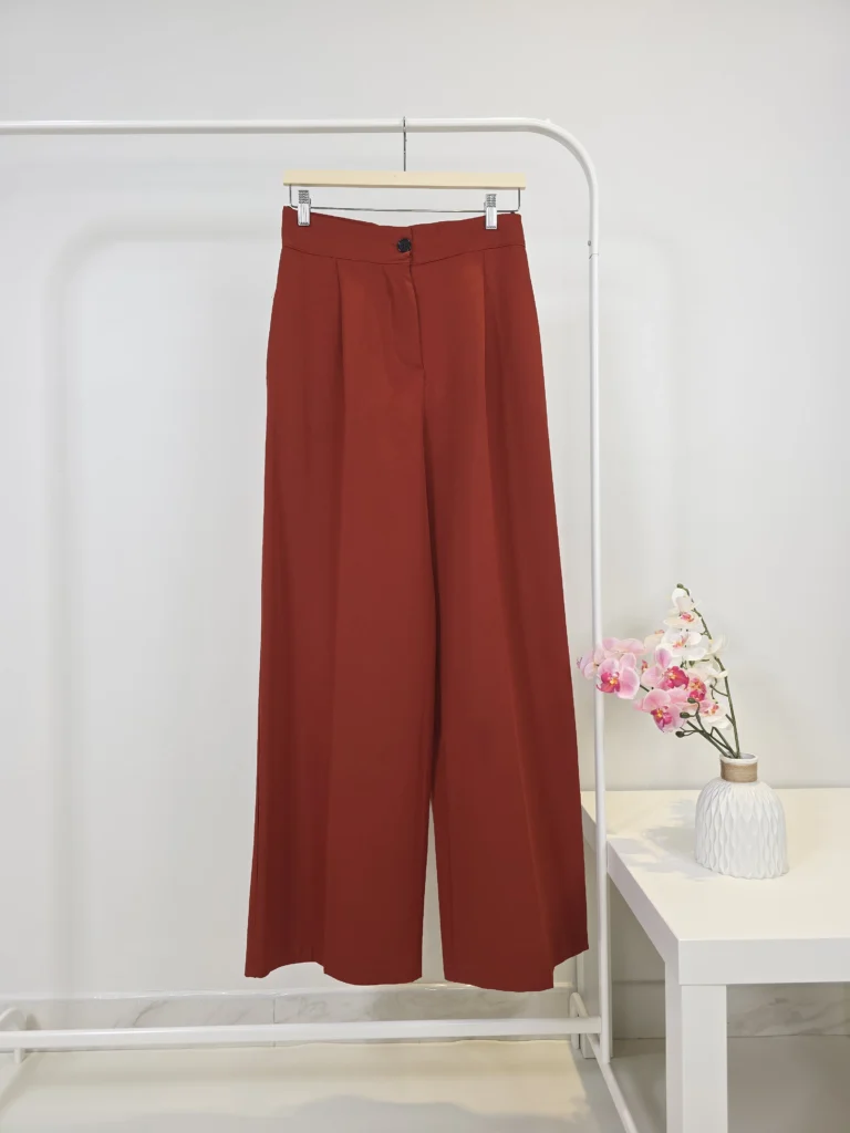 Women’s Wide Formal Pants in Brick Red – Turkish Manufacturing