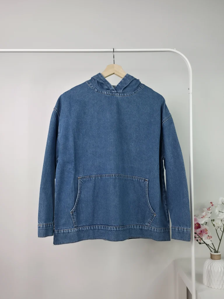 Denim Hoodie with Long Sleeves and Front Pocket – Turkish manufacturing