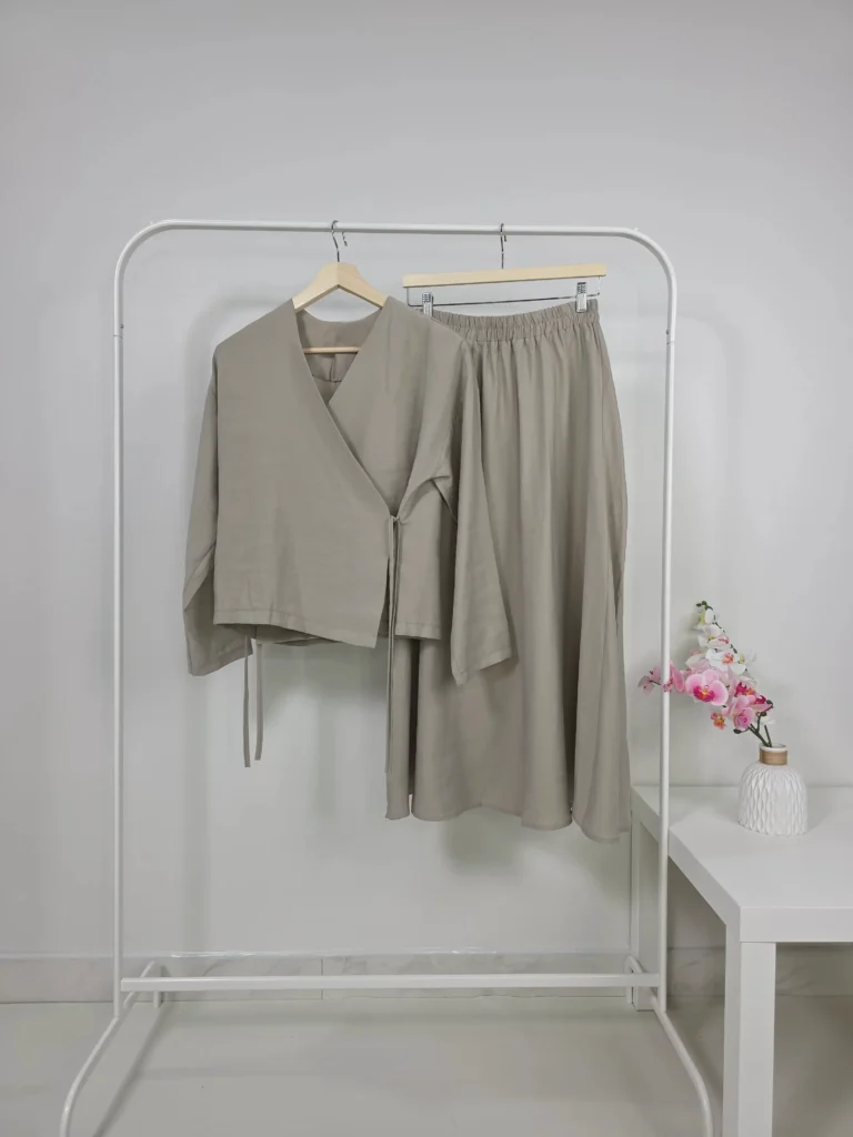 Blouse and Skirt Set in Beige Sand – Turkish Manufacturing