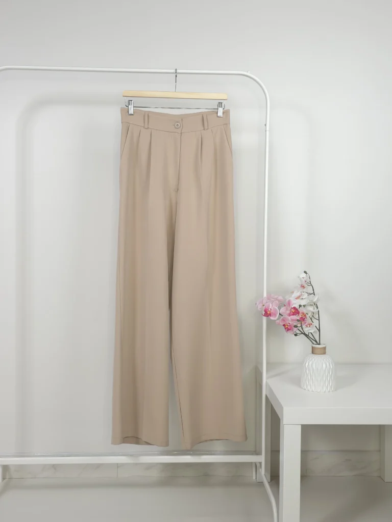 Women’s Wide Formal Pants in Beige – Turkish Manufacturing