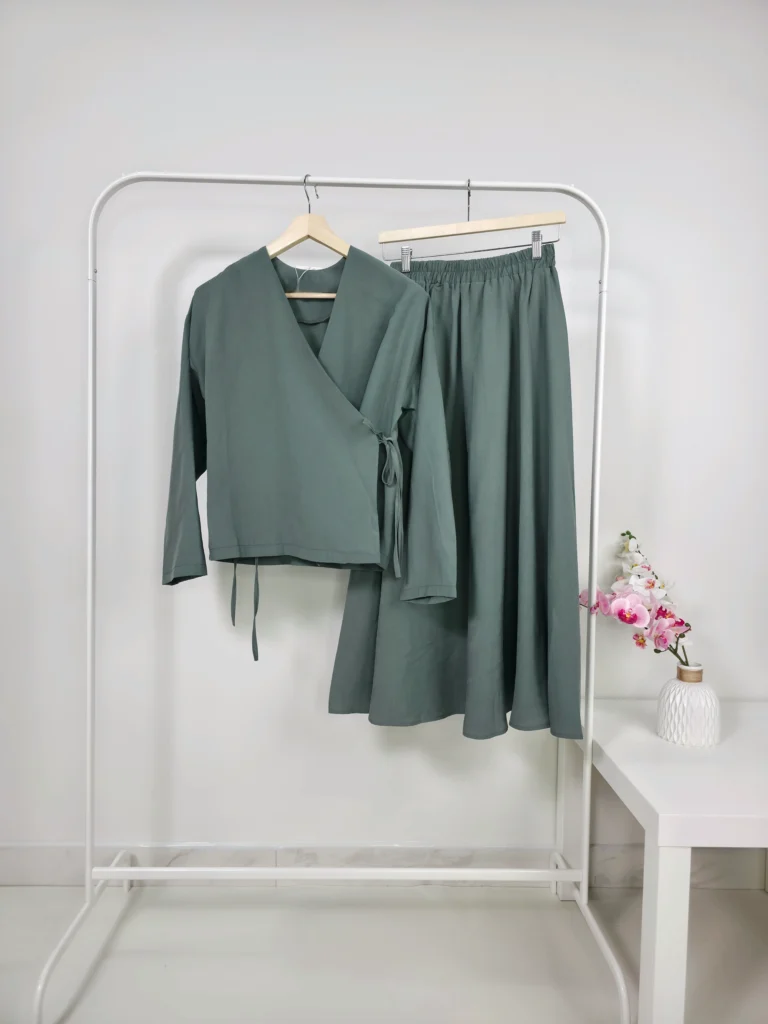 Blouse and Skirt Set in Olive Green – Turkish Manufacturing