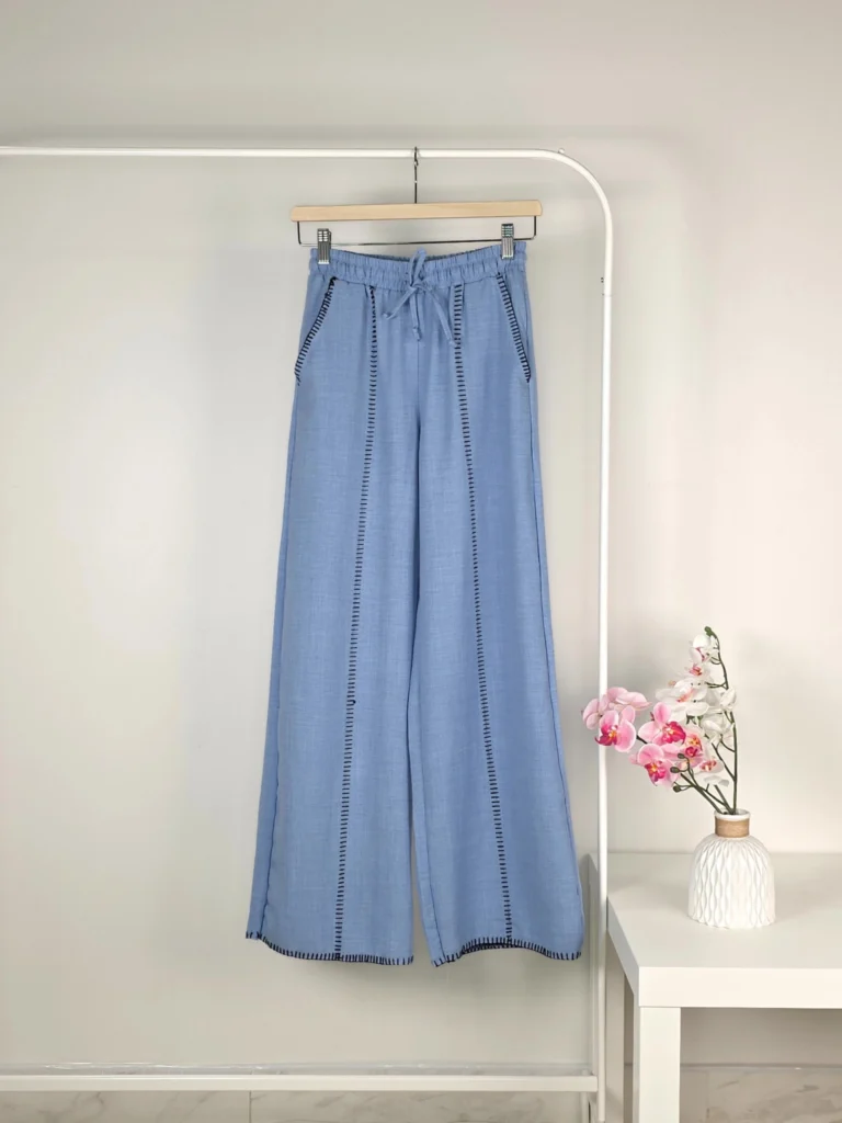 Women’s Wide Flared Pants in Elegant Blue – Turkish Manufacturing