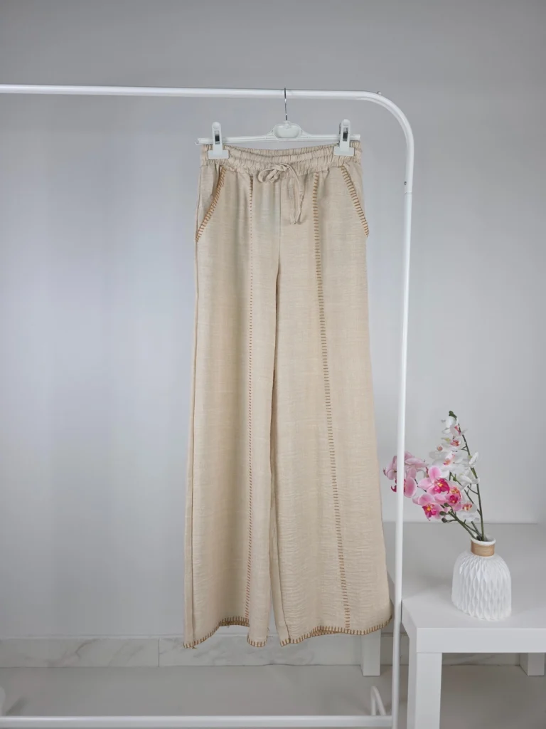 Women’s Wide Flared Pants in Elegant Beige – High-quality Turkish