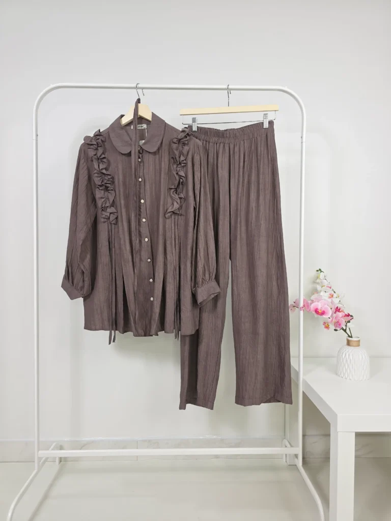 Blouse and Pants Set in Dark Brown – Turkish Manufacturing
