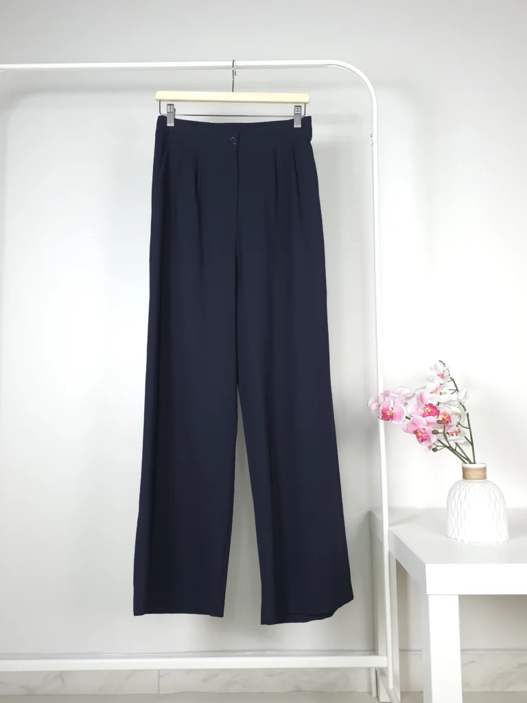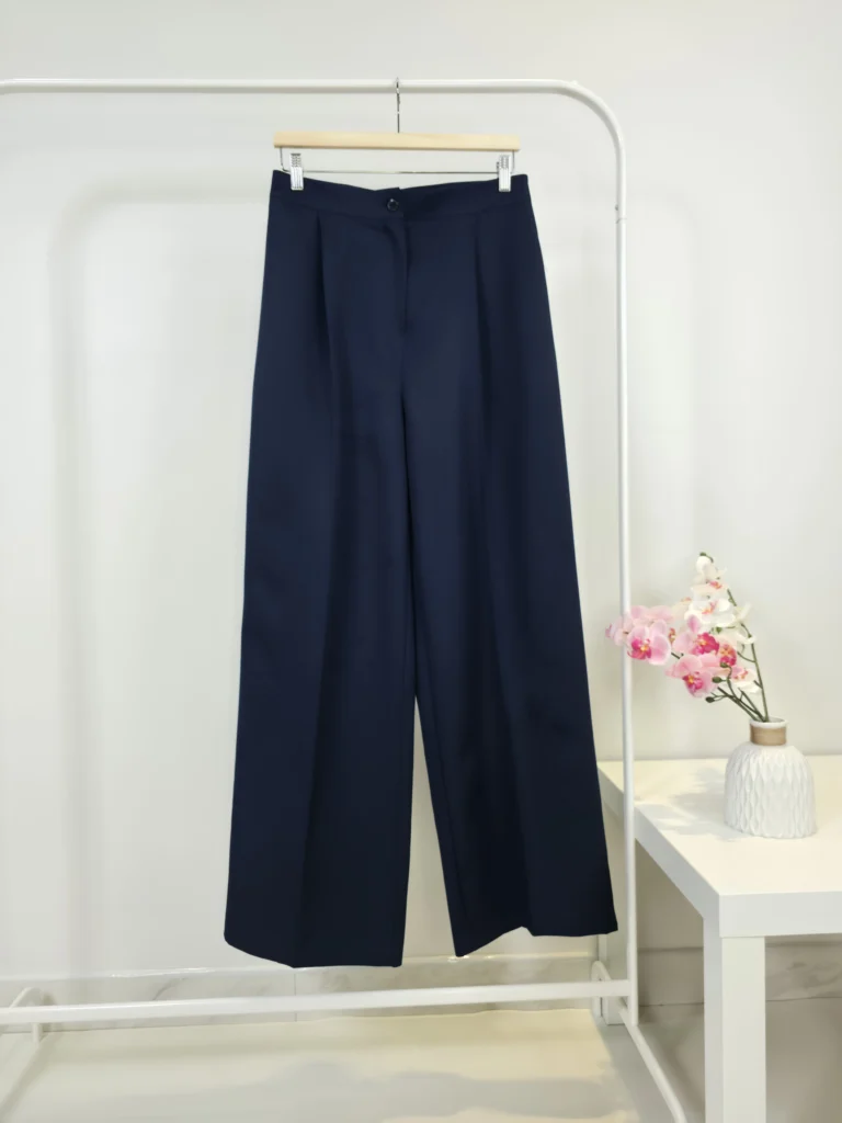 Women’s Wide Formal Pants in Navy – Turkish Manufacturing