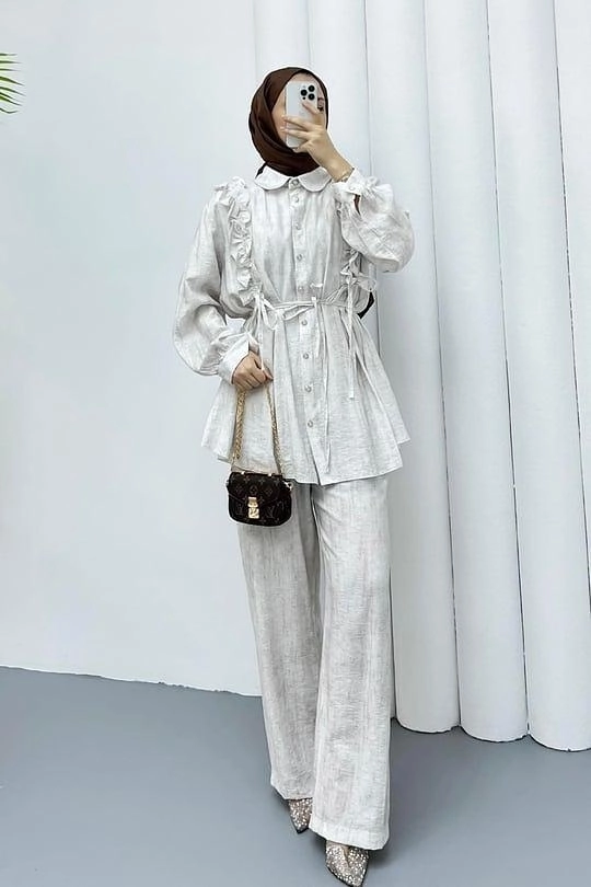 Blouse and Pants Set in Off White – Turkish Manufacturing