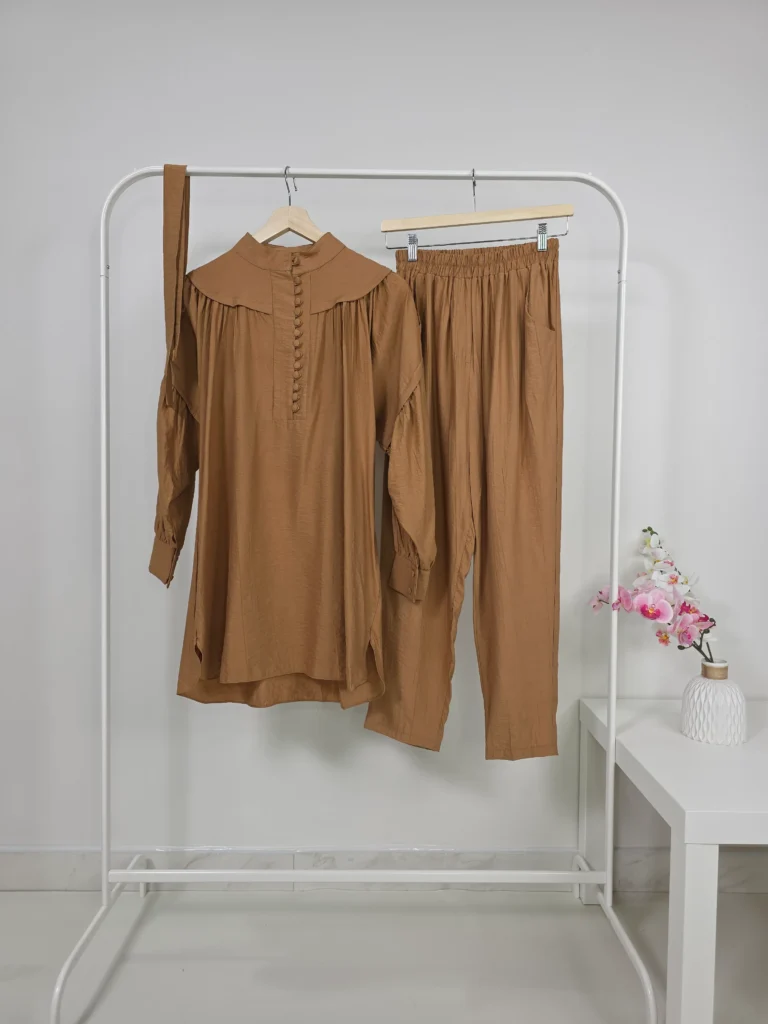 Blouse and Pants Set in Copper Brown – Turkish Manufacturing