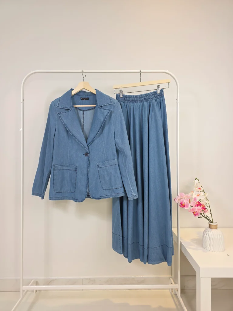 Elegant Denim Skirt & Vest Set – Turkish Manufacturing