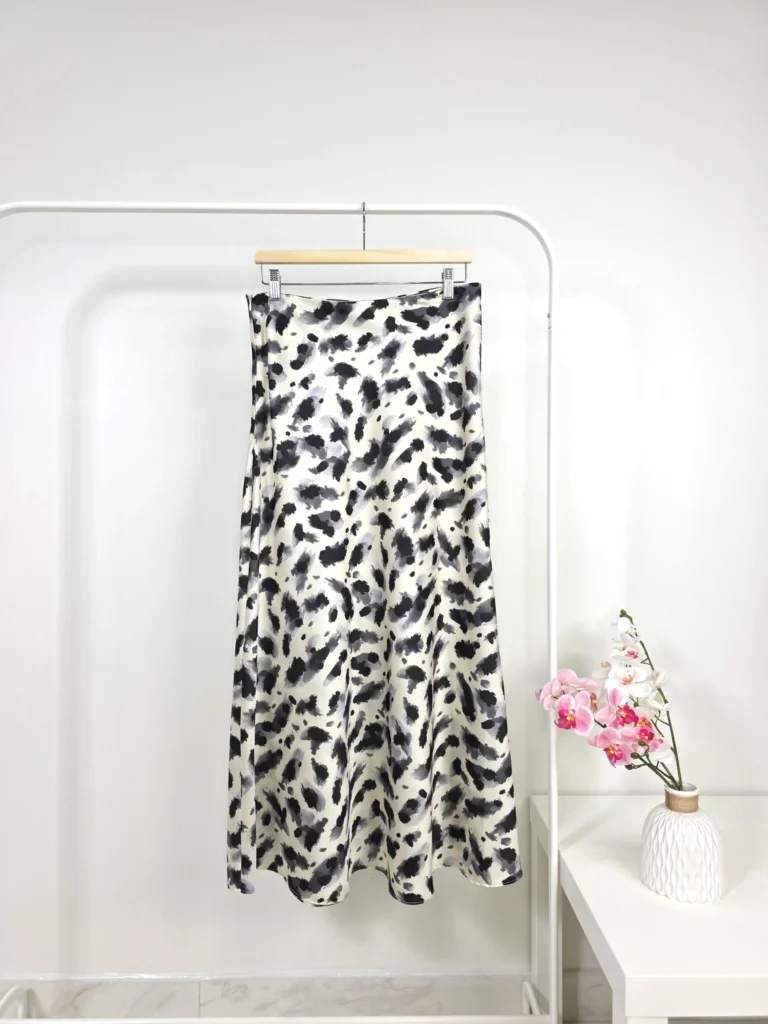 Printed Satin Skirt in Gray & Black – High-Quality Turkish Manufacturing
