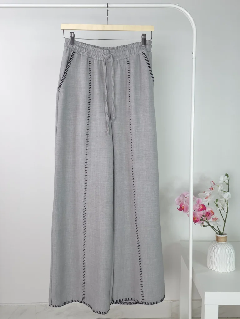 Women’s Wide-Leg Palazzo Pants in Elegant Grey – Premium Turkish Quality