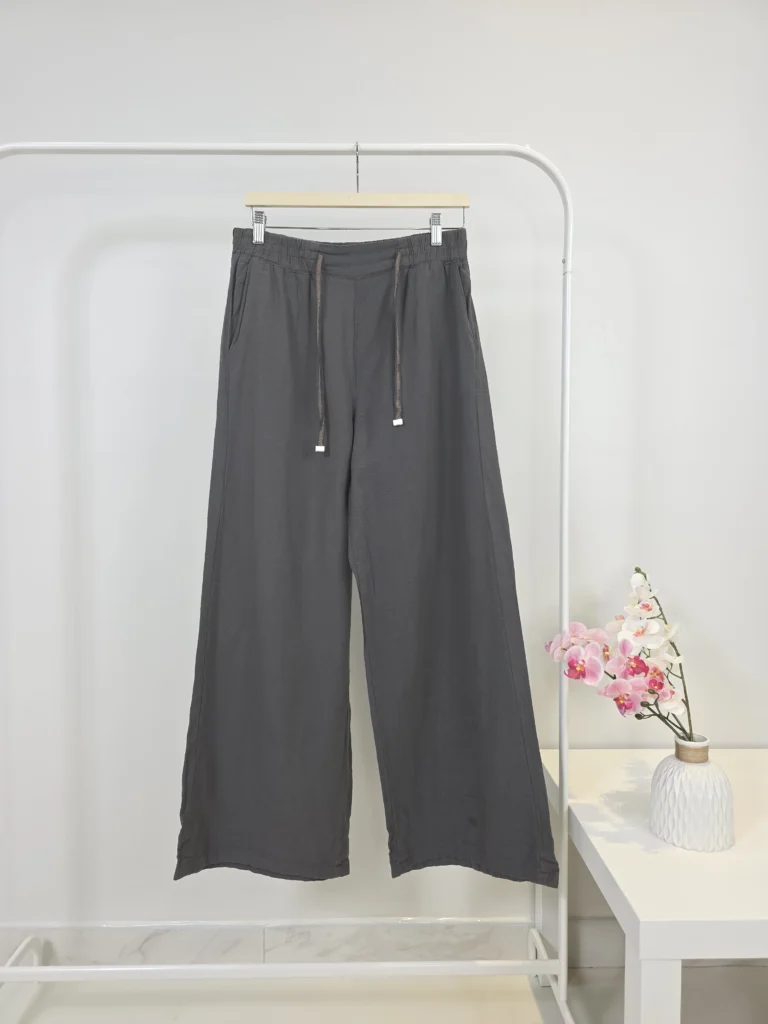Women’s Wide Cotton Pants in Grey with Drawstring Waist – Turkish Manufacturing