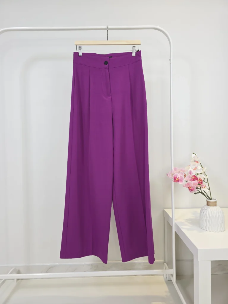 Women’s Wide Formal Pants in Fuchsia Purple – Turkish Manufacturing