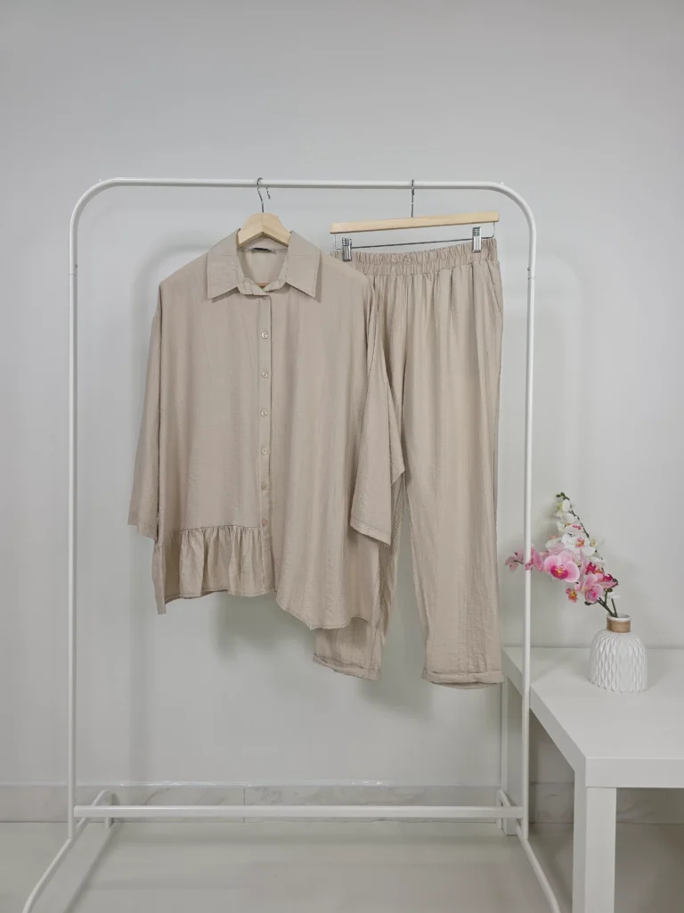 Blouse and Pants Set in Beige – Turkish Manufacturing